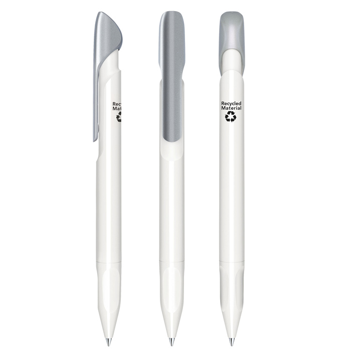 - Print area: 34 x 20mm (in line with clip) or 50 x 12mm (reverse of barrel) 35 x 7mm (clip) - plus each pen has the words 'Recycled Material' printed on the back of the barrel