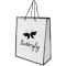 - White paper carrier bag with a coloured trim and matching rope handles.