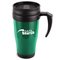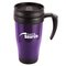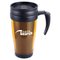 - 400ml plastic thermal mugs with spill resistant lid.