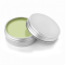 - A natural base lip balm with Cocoa Butter and Coconut Oil in a silver aluminium tin with a flat twist lid, suitable for vegans