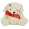 - 12cm puppy dog, with black threaded eyes and brown embroidered nose and a small hand sewn patch to its head.
