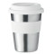 - 350ml, stainless steel travel mug with a coloured silicone grip and matching lid.