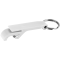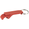 - Pocket sized, plastic bottle opener with a metal keyring attachment.